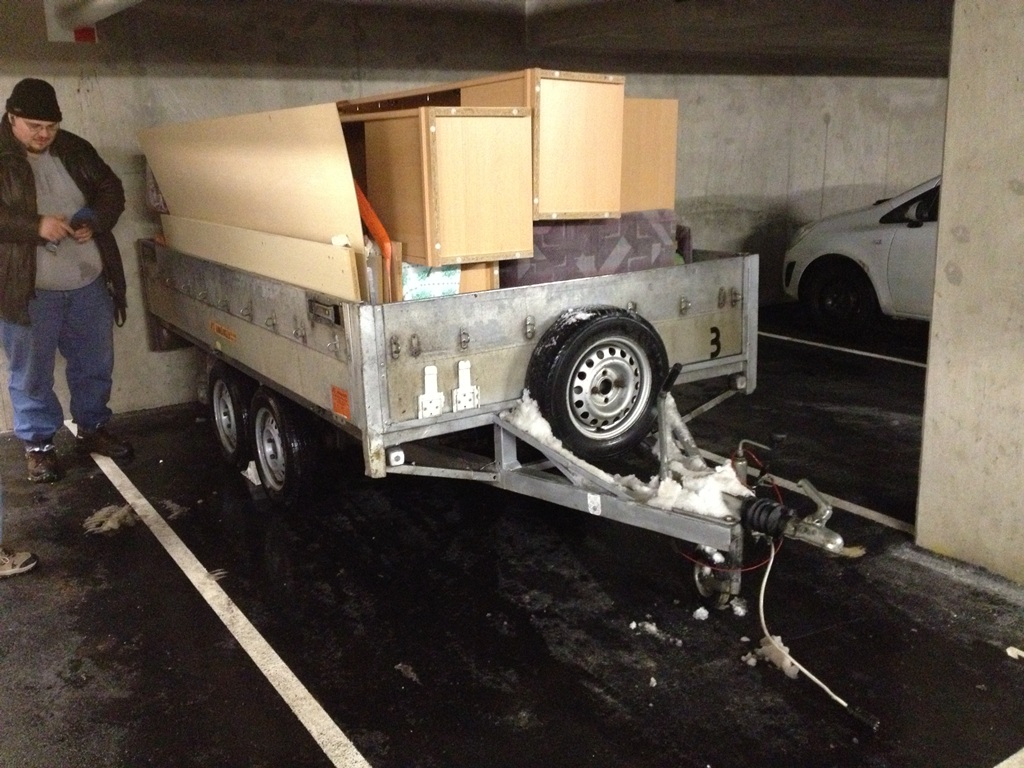 Anschließend von einer Erdgeschosswohnung Möbel eingeladen. Dazu mit dem Hänger Rückwärts auf nen Gehsteig ^^ ohne Abkoppeln und in einem Zug quasi.