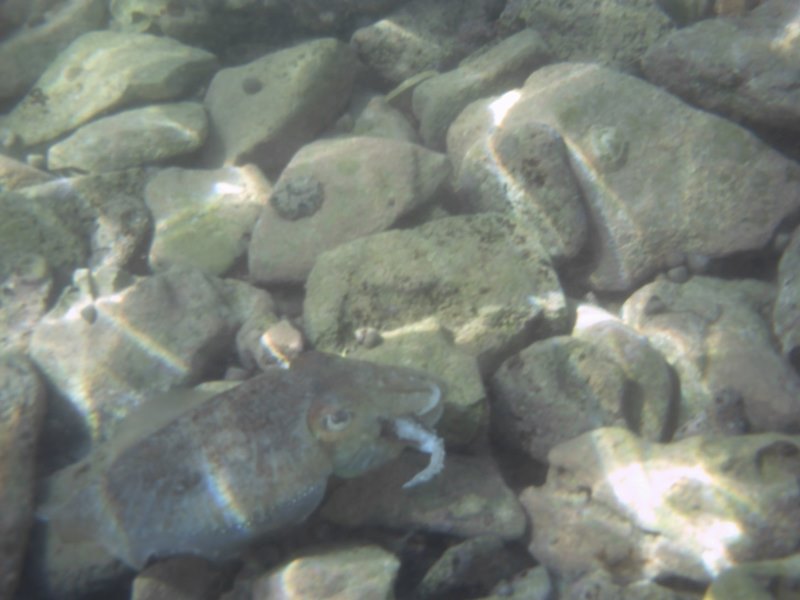 Normale Fische, Tintenfisch, was schlangenartiges.