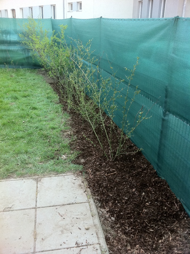 Nun der Frühling beginnt und wir fangen jetzt an unseren Garten zu gestalten. Bei der bereits vor 1 1/2 Jahren eingesetzten Hecke haben wir nun das nachgewachsene Gras wieder entfernt und Rindenmulch aufgeschüttet. Ganz schöne Arbeit aber es tut gut ^^