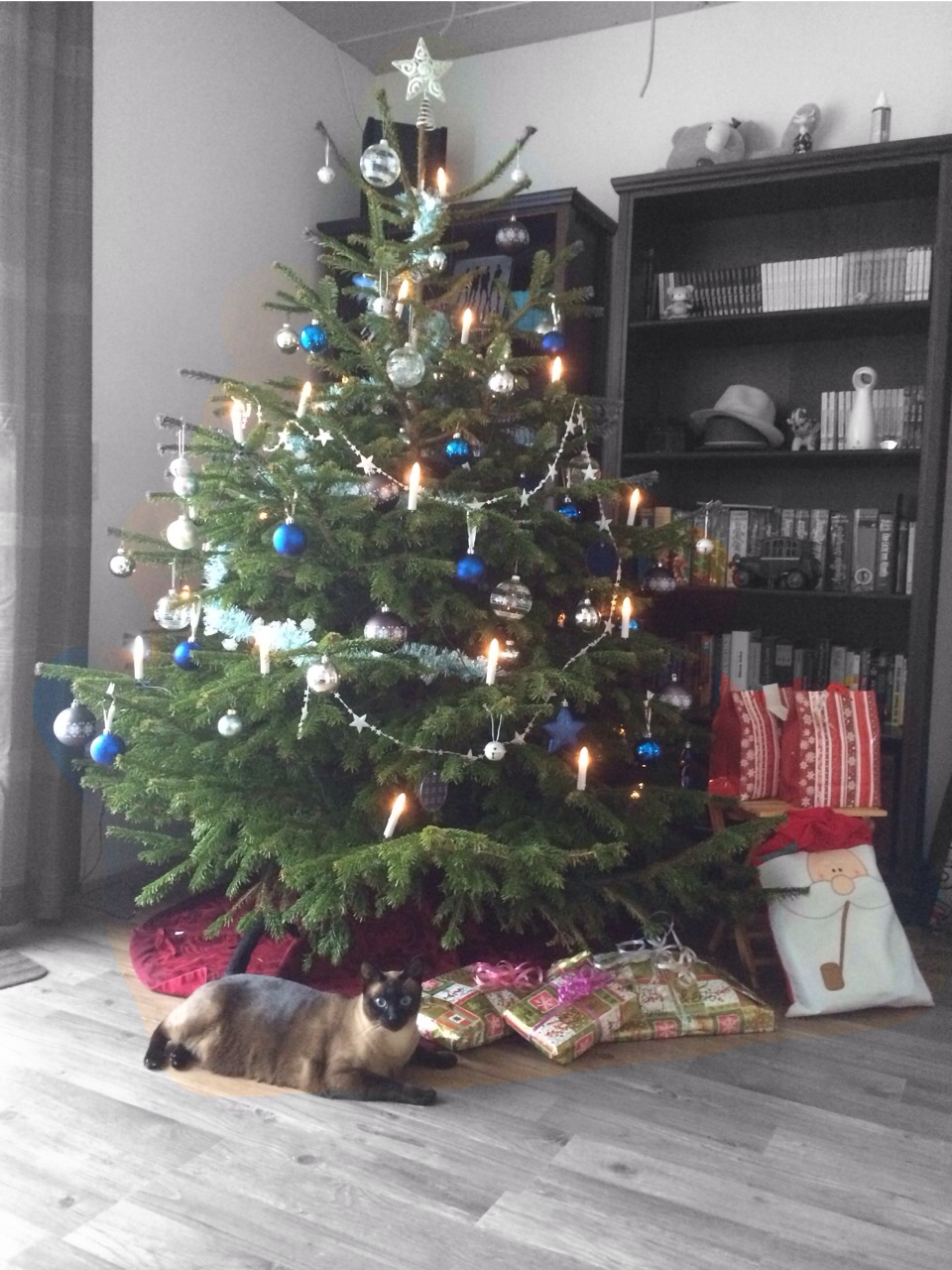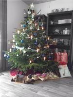 Den Tannenbaum hab ich schon das letzte Wochenende hübsch gemacht...aber gestern kam noch ein paar Kugeln und meine Spitze an...*freu*