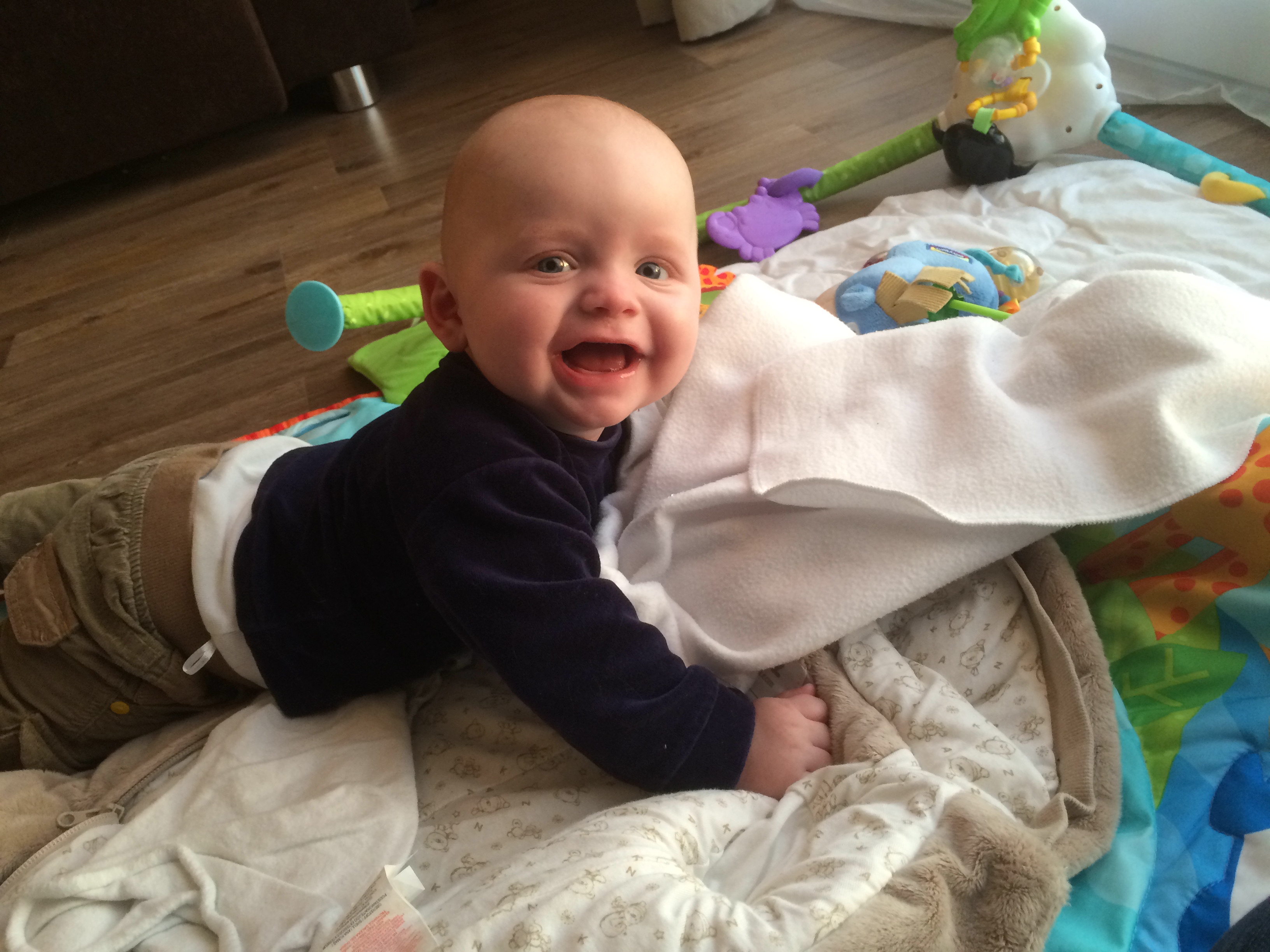Das schönste war jedoch er kann sich jetzt alleine vom Rücken auf den Bauch drehen *grins* Er war so stolz auf sich und hat von einer Seite zur anderen gegrinst. Das war sooooo schön.