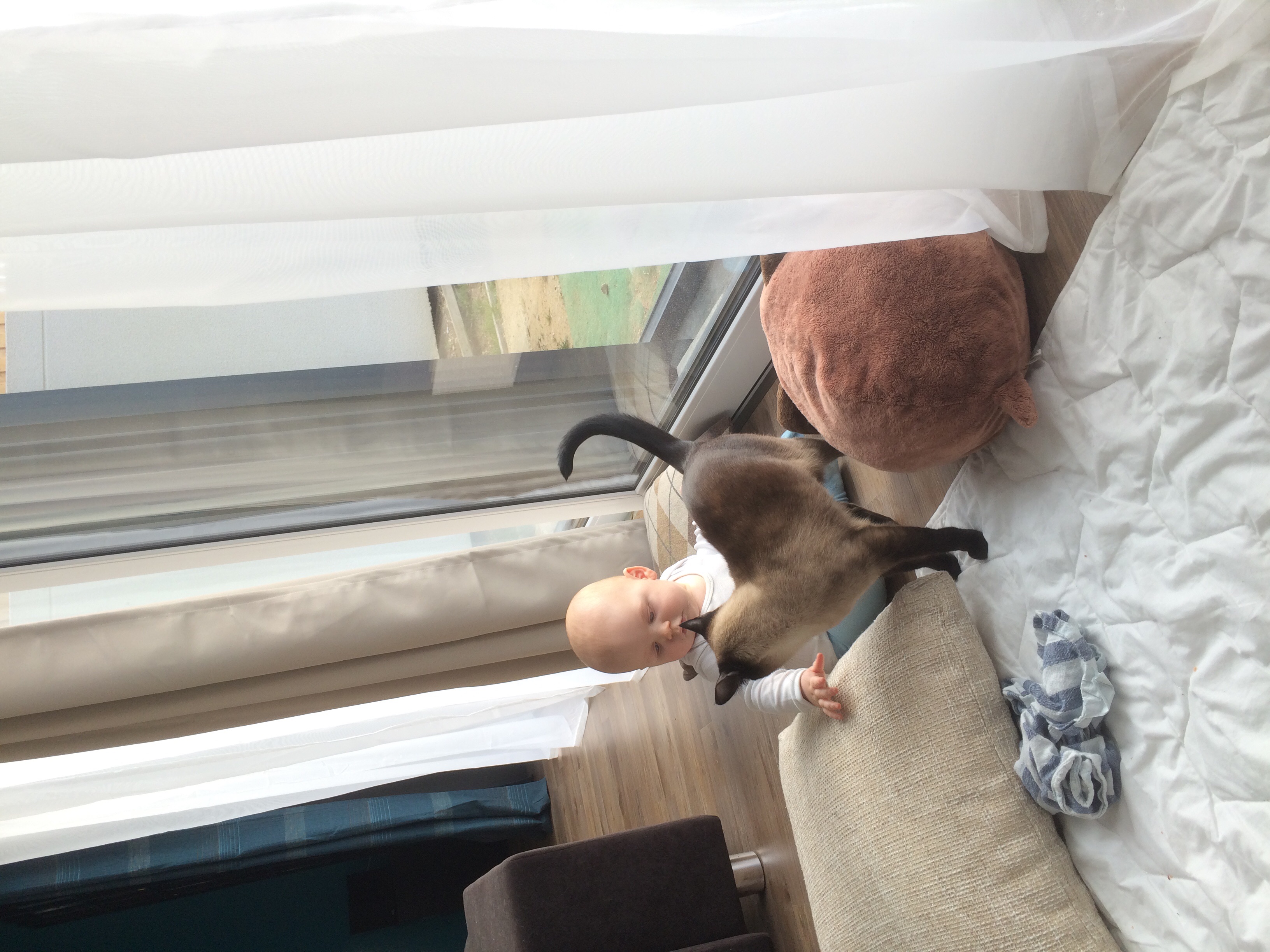 Die Mädels bis auf Miu sind immer noch sehr zurückhaltend. Miu ist es total egal. Die schmusst mit ihm und lässt sich sogar streicheln. Total schön.