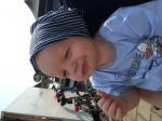 Das Wetter war etwas durchwachsen, aber doch schön. Sind dann erstmal was essen gegangen und dann zum Strand. Das Wasser war schon zurück gegangen und so haben wir dem kleinen seine Hose und den Pulli ausgezogen. Wattenmeer hat dem Knilch sehr viel Spaß gemacht. Der Kerl sah aus, den hat man kaum sauber bekommen. Danach sind wir noch zum Seerosen See gegangen und Trisi hat etwas gepennt. Mein Gott taten mir die Füße weh. Das war dann der ersten Tag.
