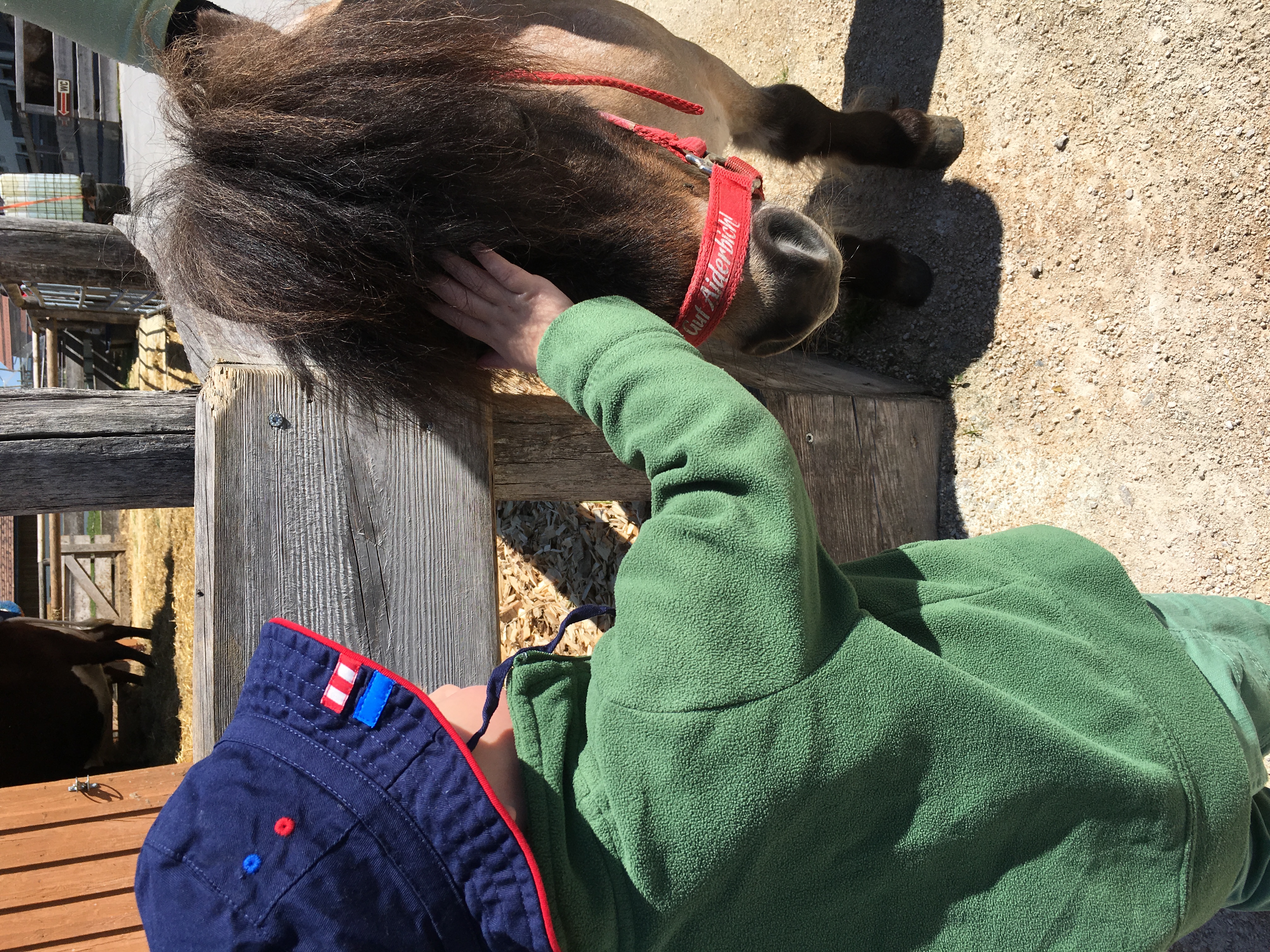 Auf dem Gut konnte der Bubi endlich mal ein Pferdchen in seiner größer streicheln^^